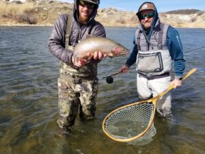 02/09/20 Miracle Mile accessible one day but not the next…we had some great fishing at the mid winter point here at the Mile but the latest snow storm drifted the road shut. We will keep ya posted…prior to the storm fishing the Mile for mid winter was great. Flows at the Mile are steady at 500cfs, water is clear with 3ft of viz. We just completed our first days guiding for 2020 season on Grey Reef and the fishing was good, we will let you know when we have enough melt for access again. Booking for 2020 is going great, in an attempt to get you your requested guide and preferred dates to fish we are urging clients to book now or sooner, we have little vacancy left during the prime fishing dates, thanks for your constant support, JO.